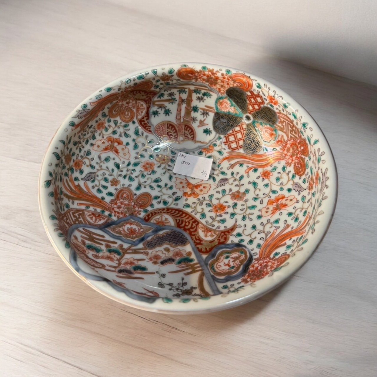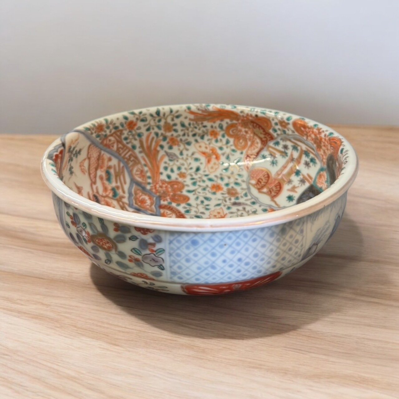 如果你喜歡日本傳統工藝,這款 古伊萬里手繪彩瓷碗 絕對能讓你一見傾心。這不只是個瓷碗,而是一件充滿故事的藝術品。它的手工繪製圖案精緻細膩,融合 藍、紅、金 的色彩,呈現典型的伊萬里燒風格,尤其碗內繪有 牡丹、松樹、與飛鶴,象徵富貴長壽,無論擺放在家中或是實際使用,都能讓人感受到濃厚的和風韻味。