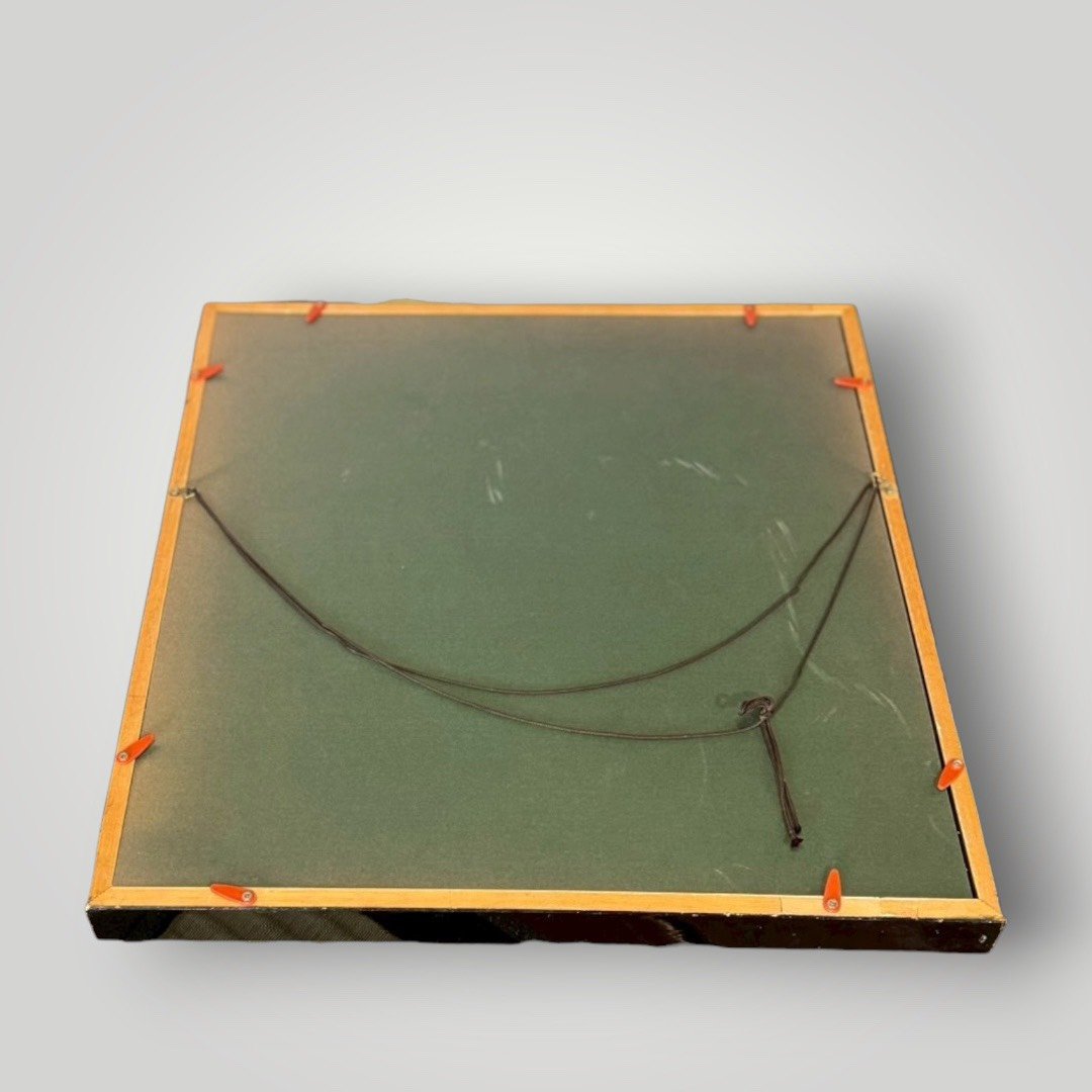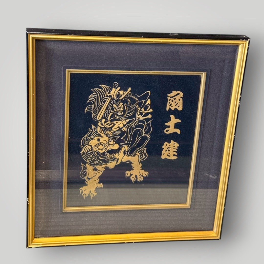 古典木胎漆製邊框: 外框採用日式傳統的木胎漆藝,質地沉穩。雖然邊緣帶有老物件特有的微小歲月痕跡,但漆面的厚度與光澤度依然保留了那份手工藝的溫潤感,與內部的金色雕刻相得益彰。