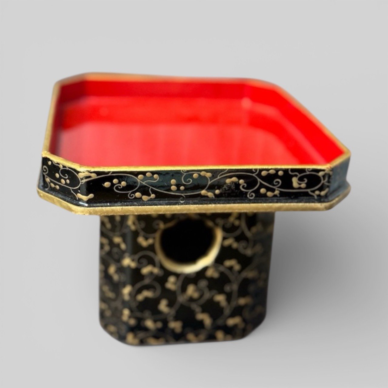 附原裝盒的傳承價值: 原裝木盒不僅有利於保存漆器不受潮或受損,更證明了這組道具的歷史出處與珍貴性,是藏家鑑定與收藏時的核心指標。