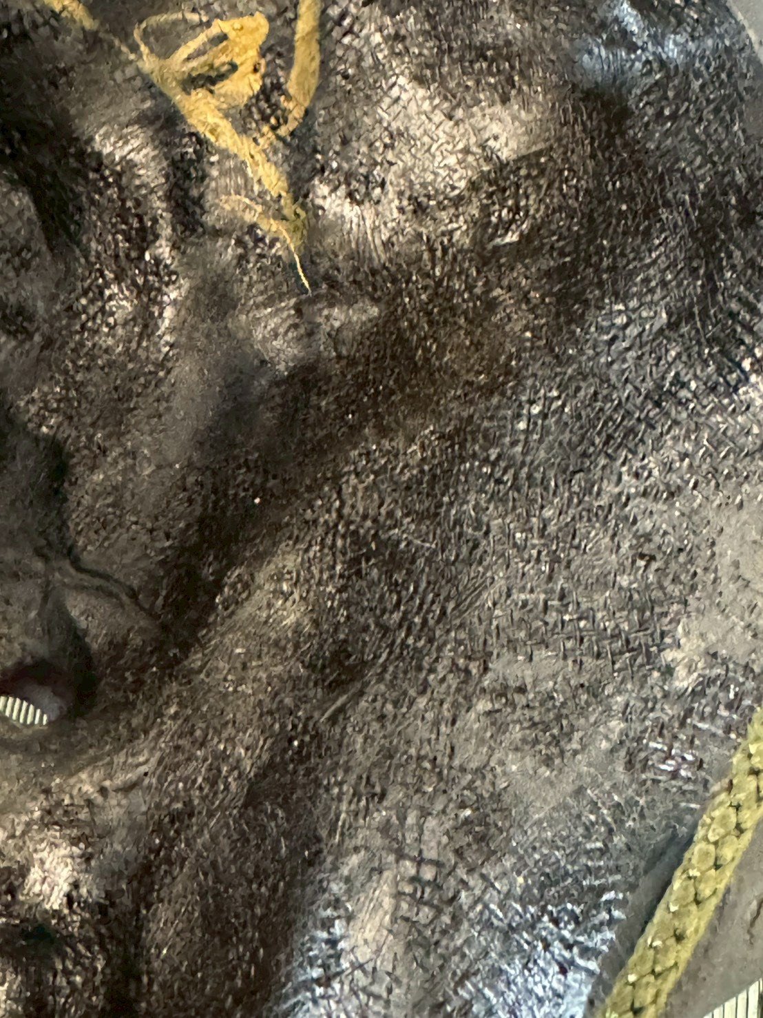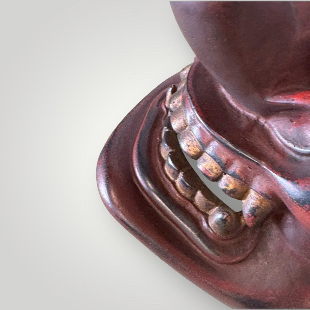 象徵神力的立體輪廓: 高達 15 公分的高度,讓面具的鼻樑、牙齒與肌肉紋路展現出驚人的立體空間感。這種強烈的存在感,使其在空間中能產生一種「屏障」般的氣場,完美符合其「守護者」的身份。