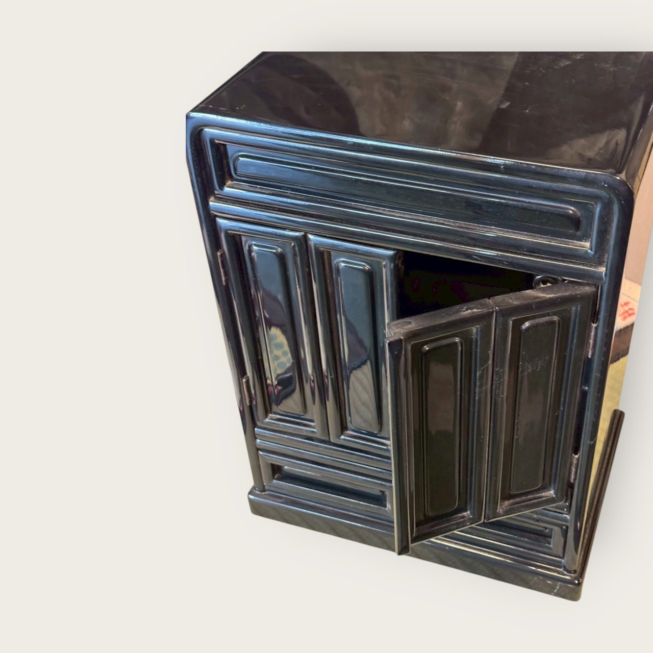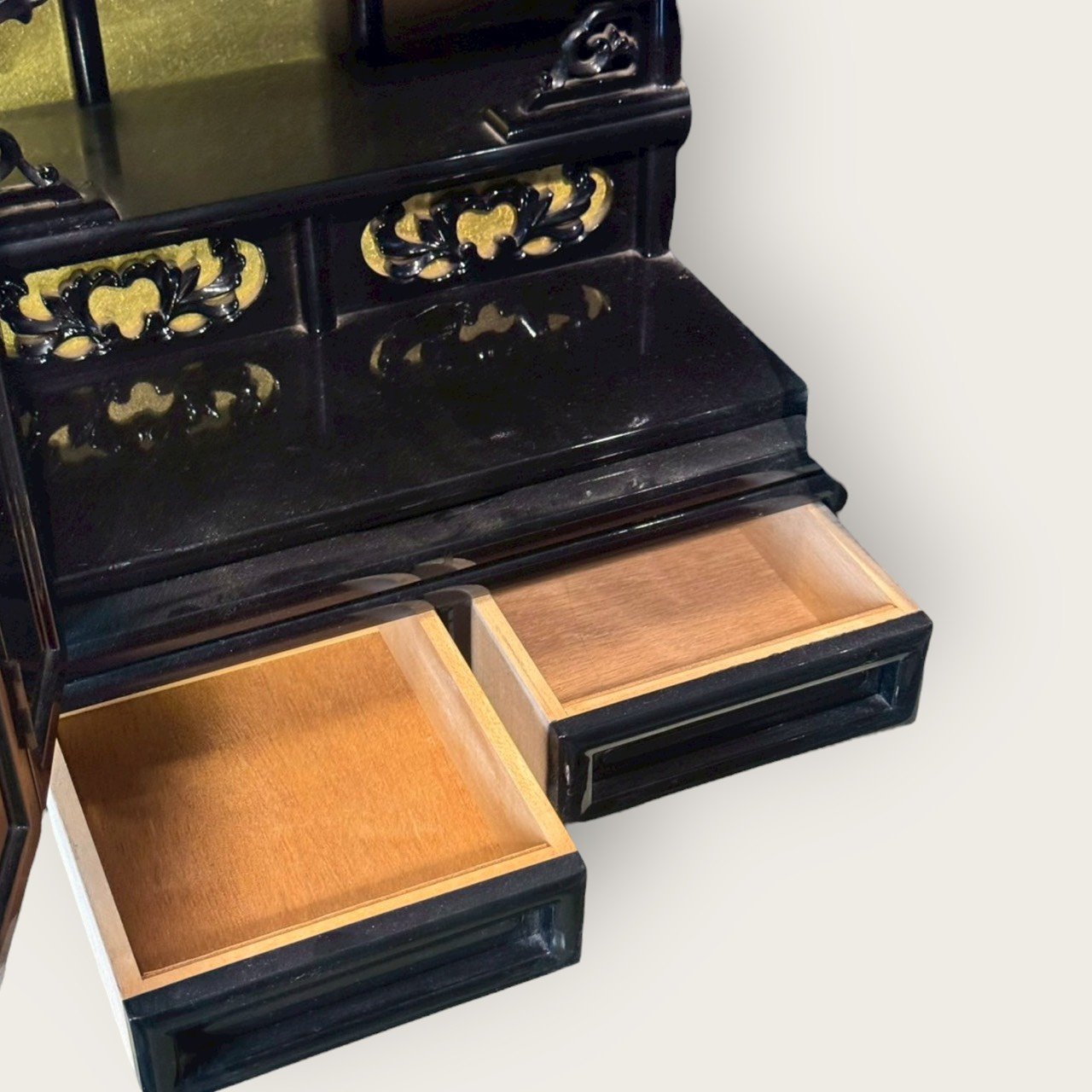傳統木胎漆藝:多層髹塗後以手工研磨,形成深邃黑亮光澤