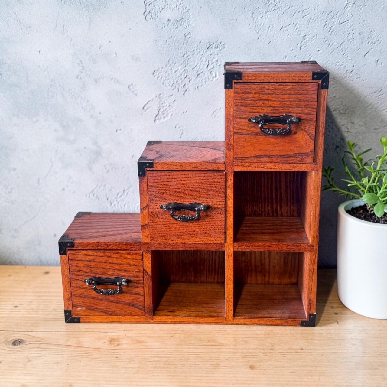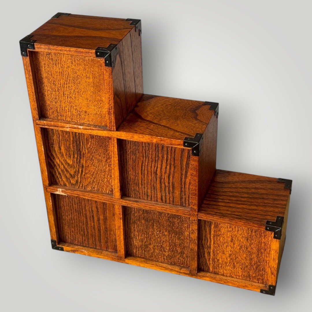 經典「階段簞笥」造型: 採用日本最具辨識度的階梯式外觀,象徵「步步高升」。其高低錯落的視覺層次,打破了傳統方正櫃體的沈悶感,為空間注入動態的平衡美學。