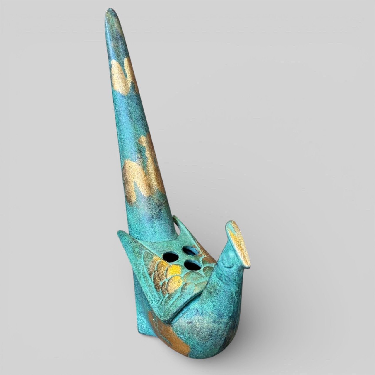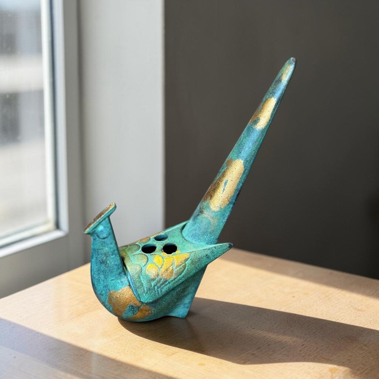 極簡主義的美學語彙: 此香爐最引人注目的是其向上延伸、長達 22.2 公分的挺拔長尾。這種極簡的線性設計,將雉雞優雅的身段濃縮成流暢的幾何美感,完美契合現代簡約或是東方侘寂風格的室內空間。