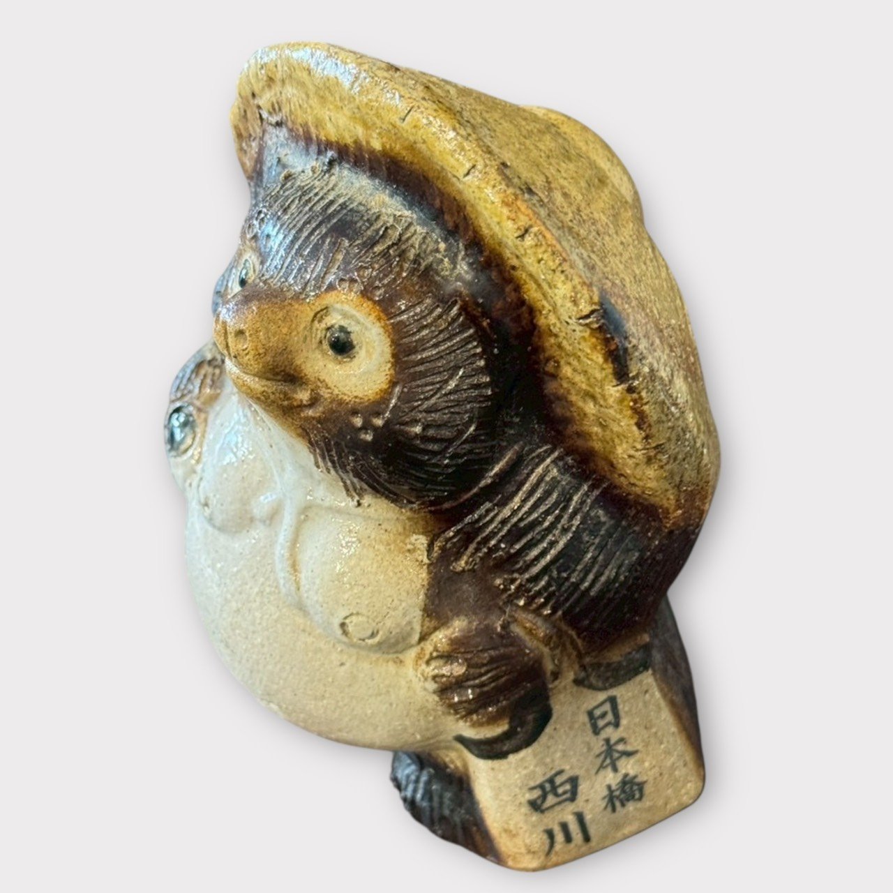 側面手寫文字點出其地緣背景,讓這尊狸貓不只是一般招財擺飾,而是一件有「旅遊記憶」與「地標故事」的老物件,收藏性更高。 -