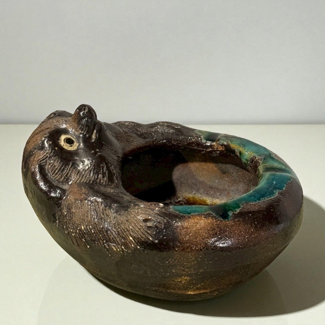 色彩對比吸睛:綠×褐的釉色與黑褐胎土形成穩重卻醒目的視覺。