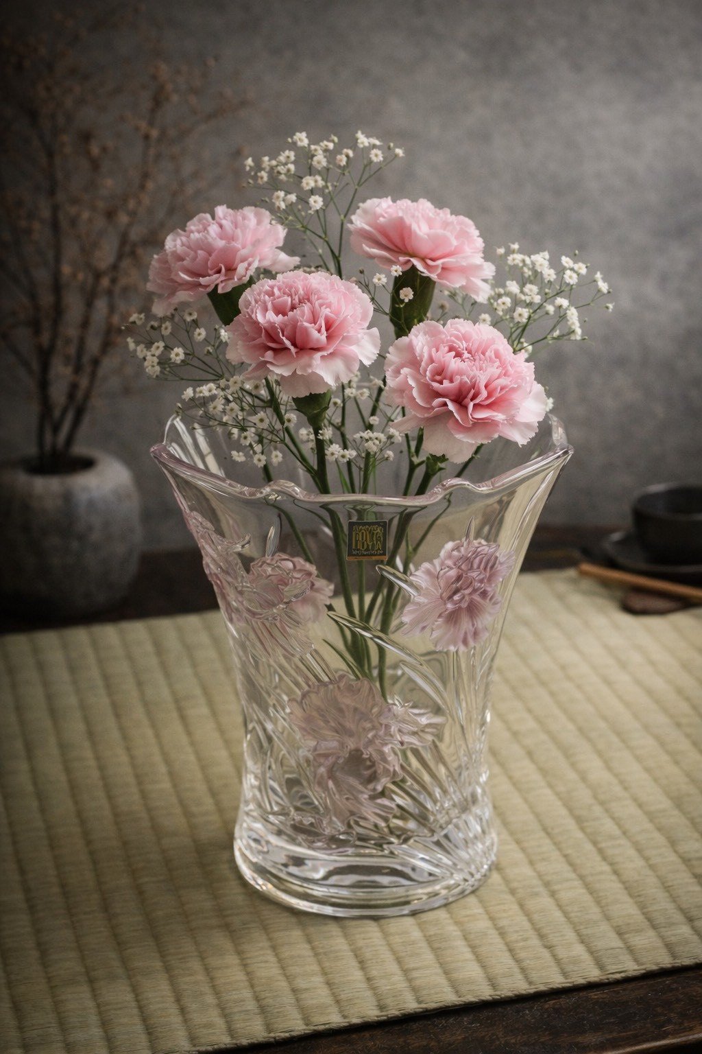 視覺與觸覺的層次對比: 晶瑩剔透的光滑面與粉色磨砂的質感交織,使得這件作品即便在不插花時,單獨作為空間擺件(Art Piece),也能展現出強烈的存在感與高雅品味。
